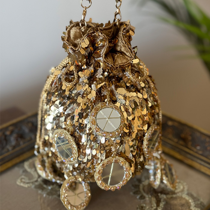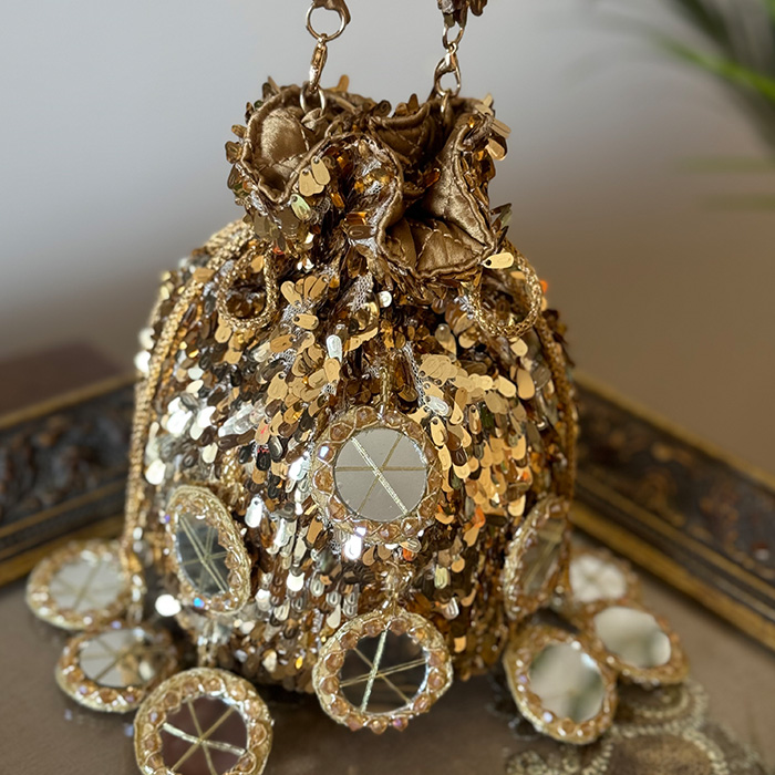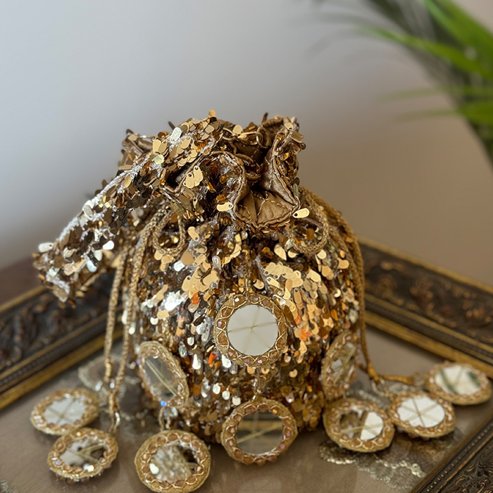- DELIGHTFUL MINI POTLIS WITH A DASH OF MIRRORS AND TASSEL HANGINGS,SLING INCLUDED